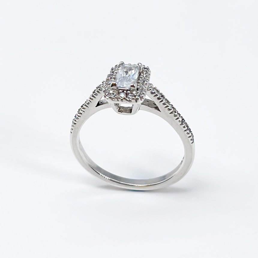 Un diseño que redefine la elegancia: anillo de compromiso en oro amarillo, rosado o blanco de 18 quilates, con un diamante central tipo baguette como protagonista. Minimalismo sofisticado, ideal para mujeres que aman lo clásico con un giro moderno. Una joya que habla de amor con claridad y estilo.