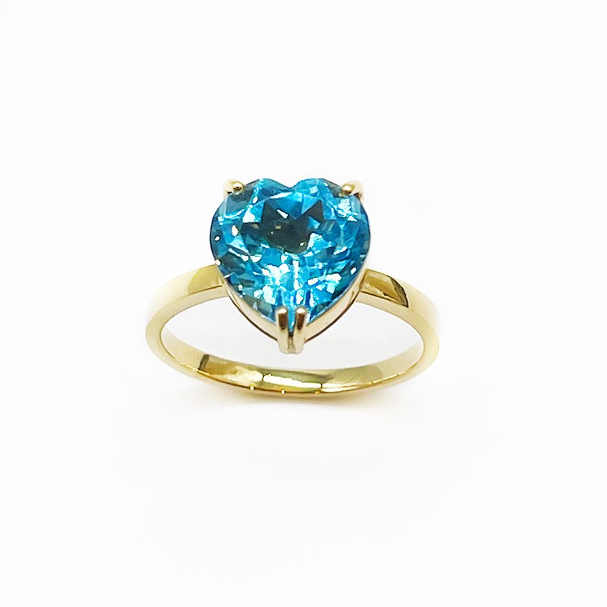 Anillo en oro amarillo 18K con topacio natural en forma de corazón de 4.3 ct. Joya única para ocasiones especiales.