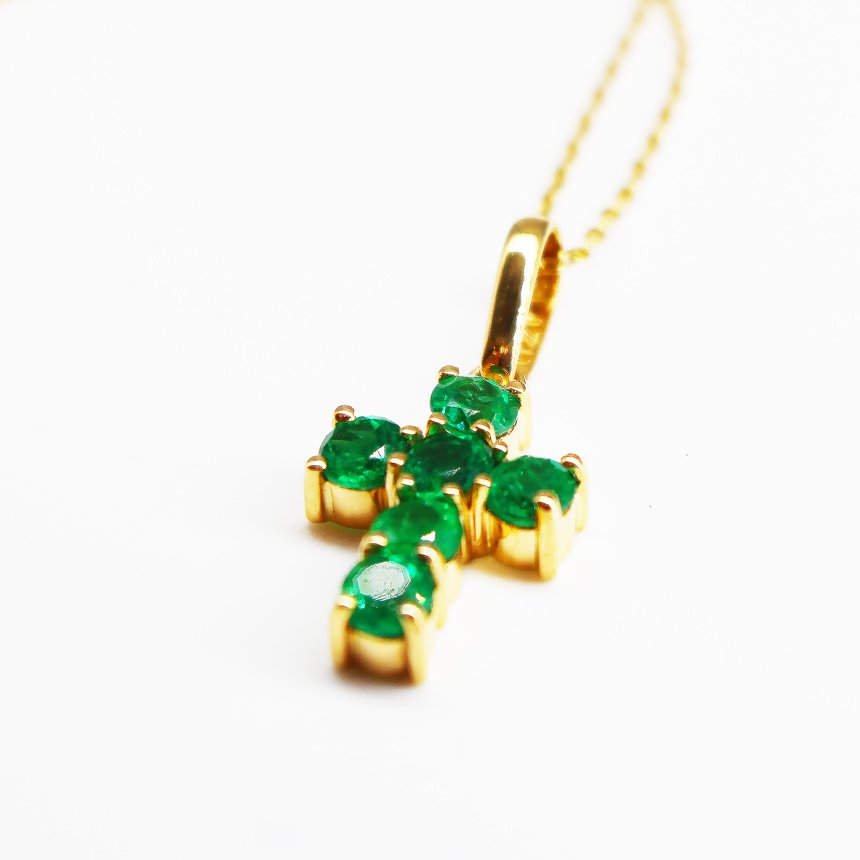 Un símbolo de fe y lujo atemporal. La Cruz Esmeralda está elaborada en oro amarillo de 18 quilates y realzada con una esmeralda central de 0.50 quilates. Ideal para quienes buscan una joya con significado profundo, belleza natural y un diseño exclusivo que trasciende modas.