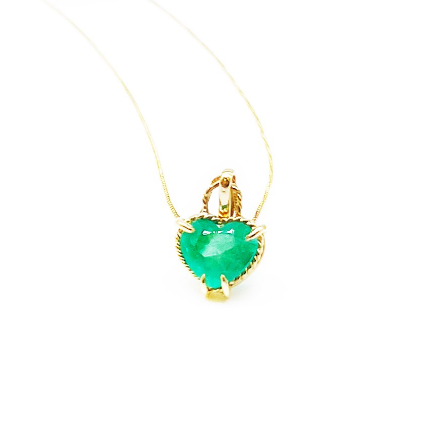 Dije Ariel en oro amarillo 18K con esmeralda natural de 1.67 ct (22 mm). Perfecto como regalo exclusivo o joya de colección.