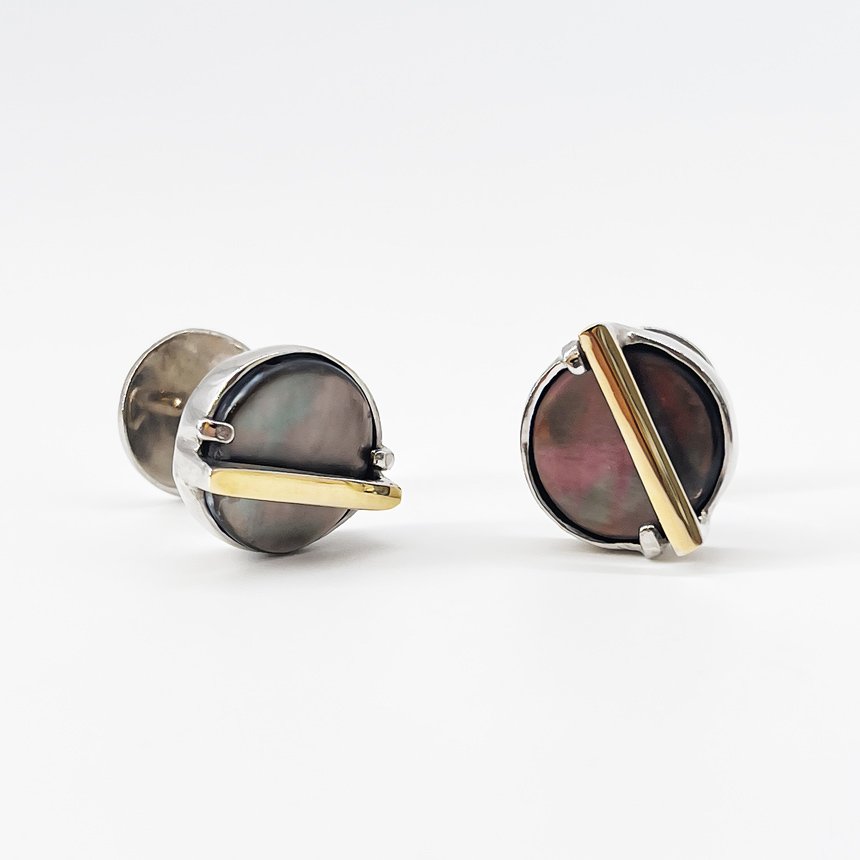Mancornas elegantes elaboradas en plata ley 950 rodinada y detalles en oro de 18 quilates. Diseñadas para hombres que cuidan cada detalle, estas piezas combinan la solidez de los metales nobles con una estética sobria y sofisticada. El toque final perfecto para atuendos formales o de gala.