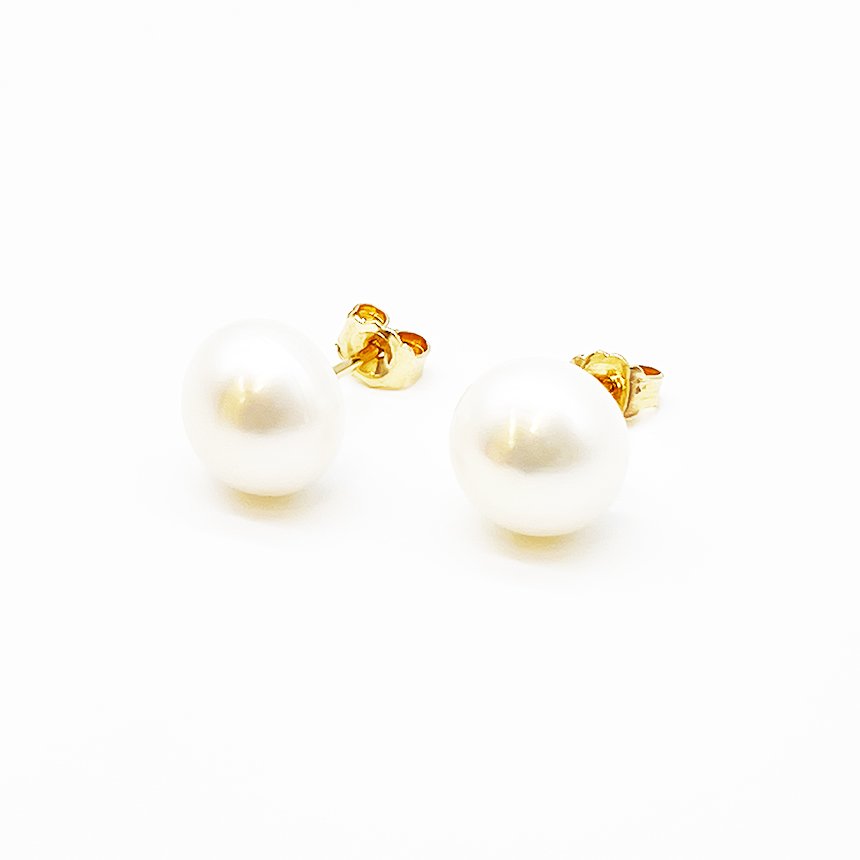 Topos Maya en oro amarillo 18K con perlas naturales. Atemporales y sofisticados.