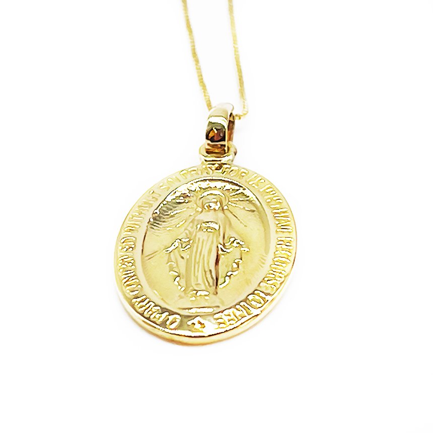 Dije Virgen en oro amarillo 18K. Ideal como joya espiritual y elegante.